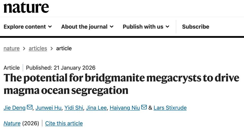 论文链接:Deng, J., Hu, J., Shi, Y. et al. The potential for bridgmanite megacrysts to drive magma ocean segregation. Nature (2026).