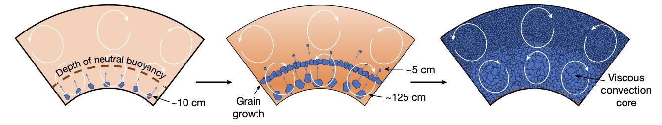 地球在形成初期很可能经历大规模熔融,形成全球性岩浆洋。岩浆洋如何结晶固化,被认为为此后数十亿年的地幔化学组成与动力学演化奠定了初始条件。然而,在剧烈对流的高温高压环境中,晶体究竟以何种粒径形成并参与分离结晶,长期以来缺乏直接约束。受限于实验条件,对下地幔主要矿物布里奇曼石在深部岩浆洋中的成核与生长行为,科学界一直知之甚少。
