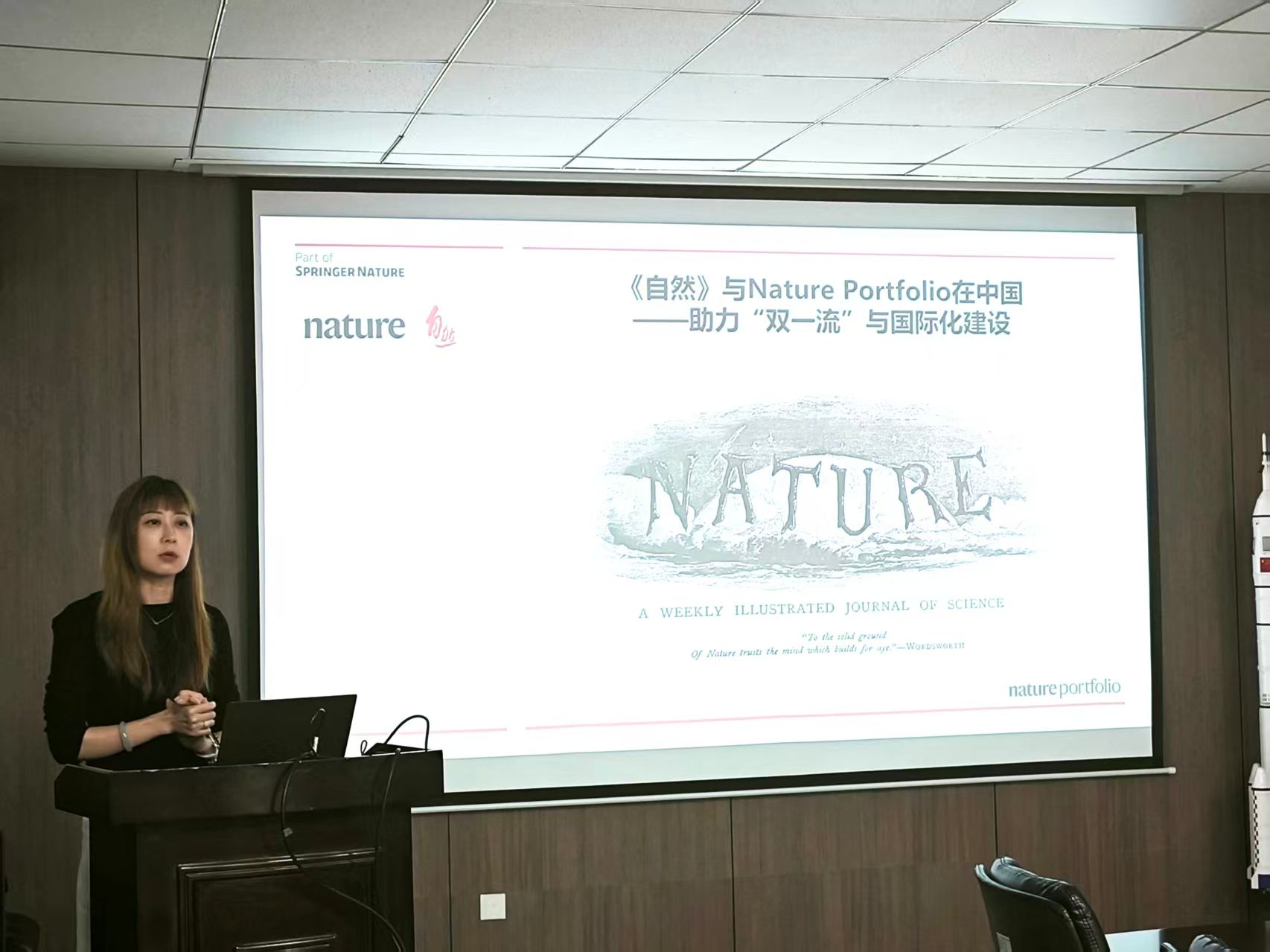 李雨霞系统介绍了Nature Portfolio公司发展概况及旗下期刊矩阵布局,重点阐述了机构合作支持模式、期刊影响力建设等方面的核心举措,具体涵盖科研人才引进与培育、学术成果推广、学科战略规划、期刊影响力评估等关键内容。