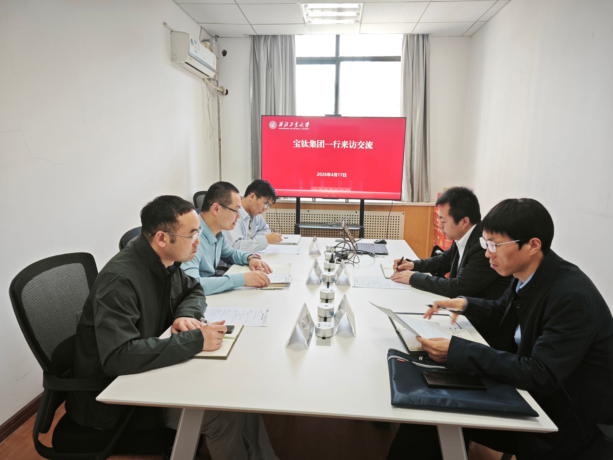 4月17日,宝钛集团宝钛研究院副院长王新、西安宝钛新材料科技有限公司主任张智鑫一行到访实验室,开展专题调研交流,深化校企科研合作。实验室副主任王军、何峰、牛海洋出席座谈会,会议由王军主持。